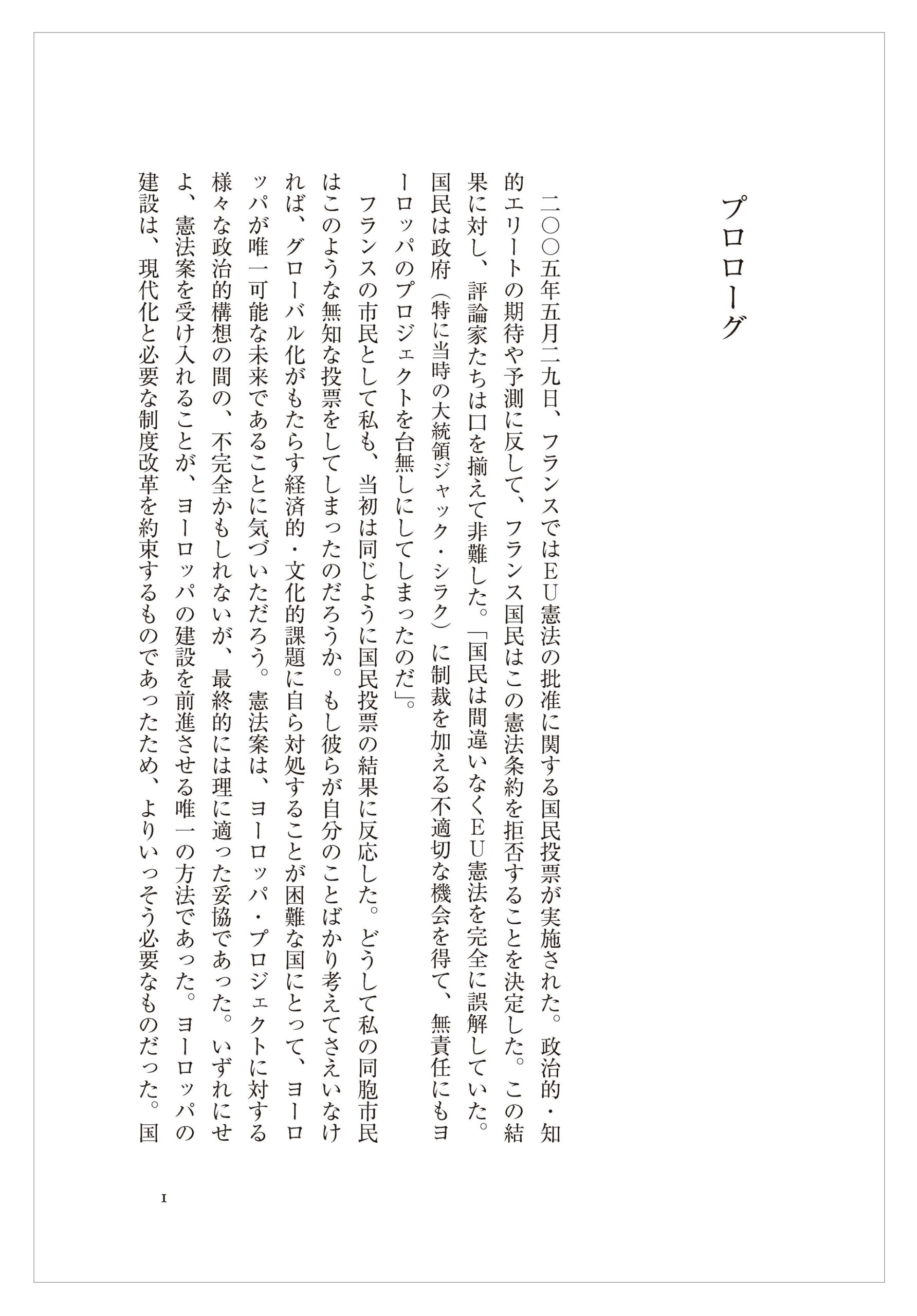 フランスの市民として私も、当初は同じように国民投票の結果に反応した。どうして私の同胞市民はこのような無知な投票をしてしまったのだろうか。もし彼らが自分のことばかり考えてさえいなければ、グローバル化がもたらす経済的・文化的課題に自ら対処することが困難な国にとって、ヨーロッパが唯一可能な未来であることに気づいただろう。憲法案は、ヨーロッパ・プロジェクトに対する様々な政治的構想の間の、不完全かもしれないが、最終的には理に適った妥協であった。いずれにせよ、憲法案を受け入れることが、ヨーロッパの建設を前進させる唯一の方法であった。ヨーロッパの建設は、現代化と必要な制度改革を約束するものであったため、よりいっそう必要なものだった。国民投票には正しい答えがあり、私はフランス国民が間違った答えを出したのだと考えた。