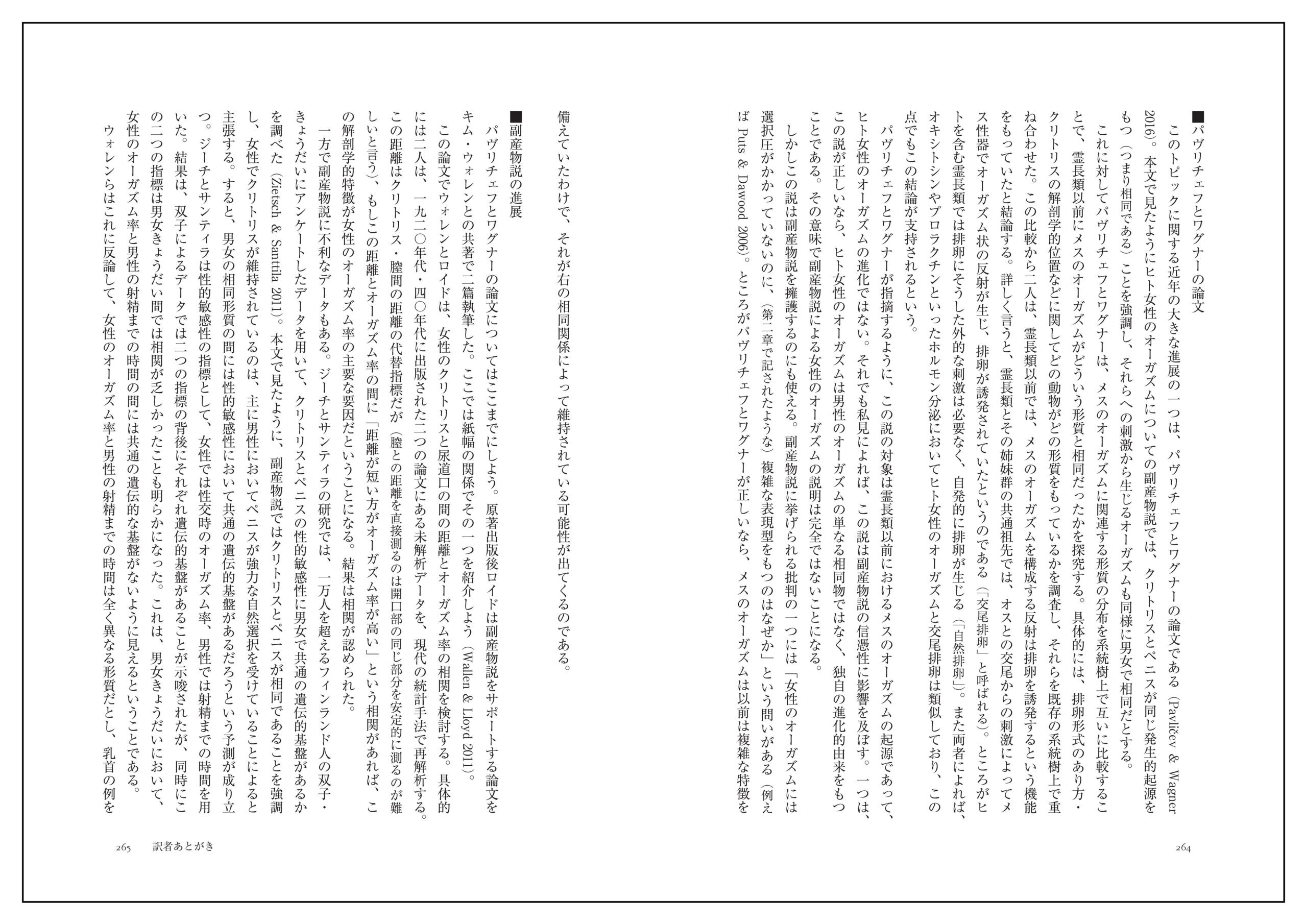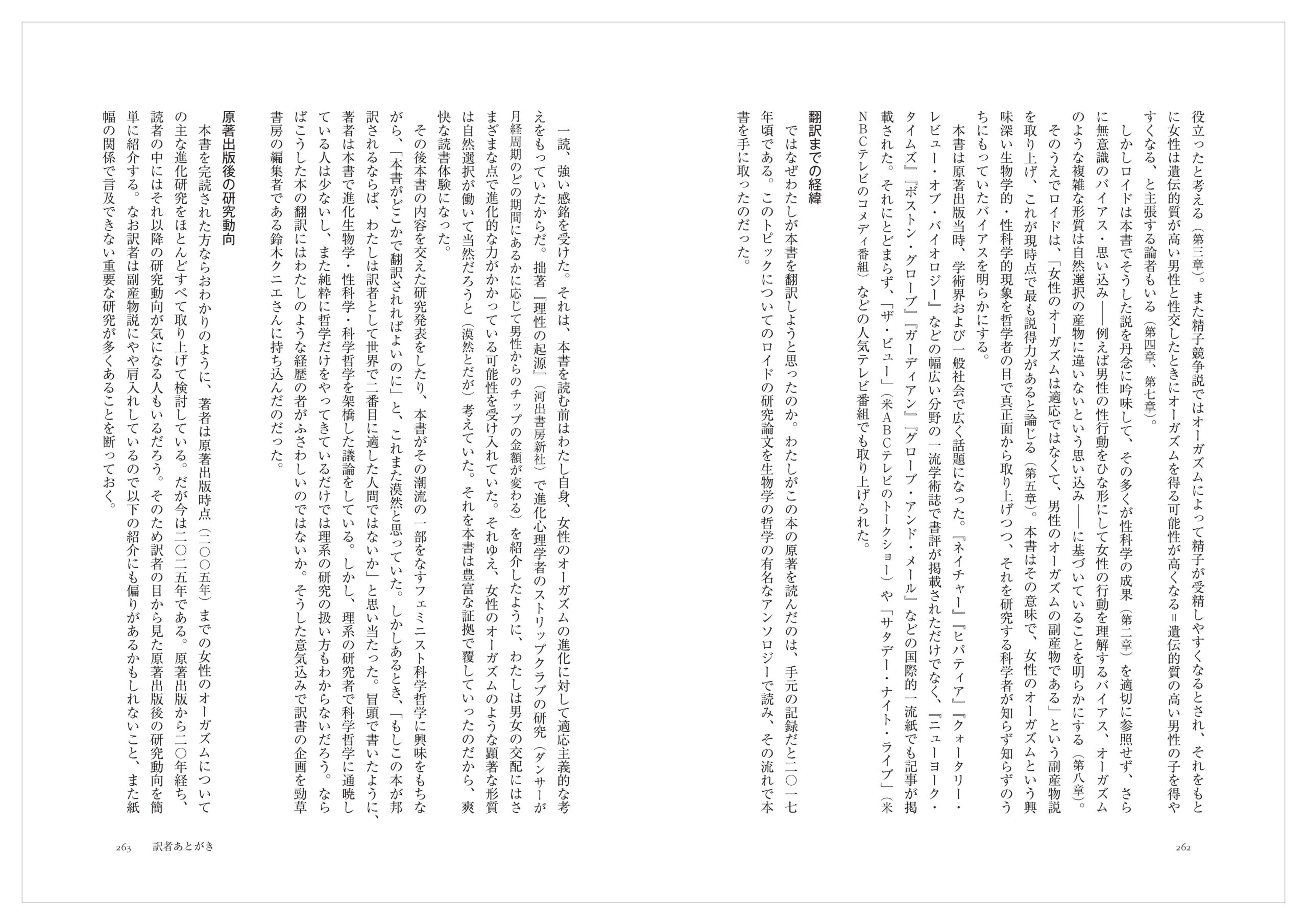 →〈「第一章 はじめに─なぜ女性のオーガズムの進化を語るのか」「訳者あとがき」(pdfファイルへのリンク)〉