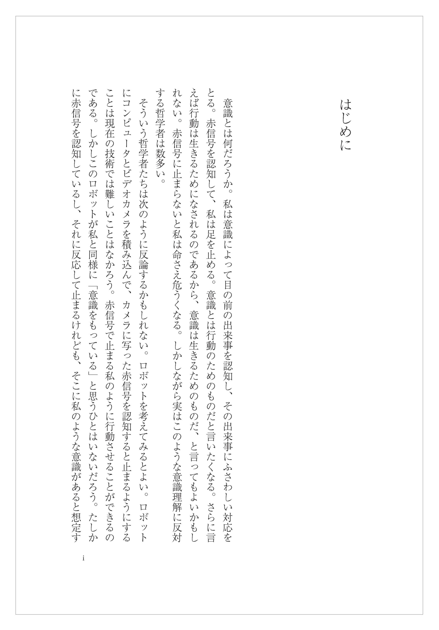 ふたつ目は物質からの意識の生成の問題である。この問題は哲学史上有数の難問であり、私の力で解明することなど望むべくもない。ただ、本書の論議をふまえて、(のちに説明する)「原態勢」による自己認識がクオリア経験を準備したのではないかという予想が立てられる。これは問題解明の一助となるかもしれない。