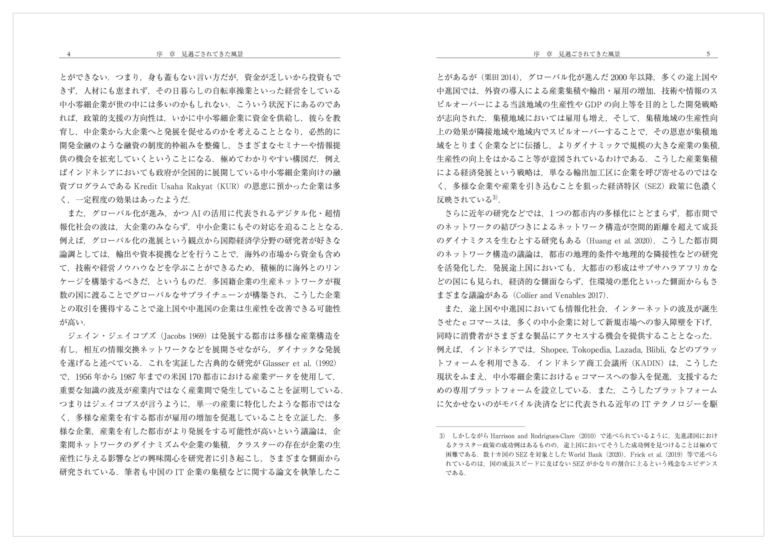 こうして時間をかけたことで,多くの共著者や共同研究者の方々にもお世話になった.とりわけ伊藤恵子氏(千葉大学),Chiara Criscuolo 氏(OECD),Jonathan Timmis 氏(世界銀行),Ulrich Volz 氏(ロンドン大学),牧野愛氏,金澤昂季氏らのサポートには心から感謝をしている.また日比野友美,岡本千裕,向井里於,岩谷桃佳,竹島梨紗,稲田優花,佐宗すみれ,石坂航流らの弊ゼミナールOB・OG 諸氏には調査の実施に大変な尽力を頂いた.もちろん筆者が研究者として歩むために叱咤激励を繰り返してくださったすべての方々にも併せて感謝を申し上げたい.
