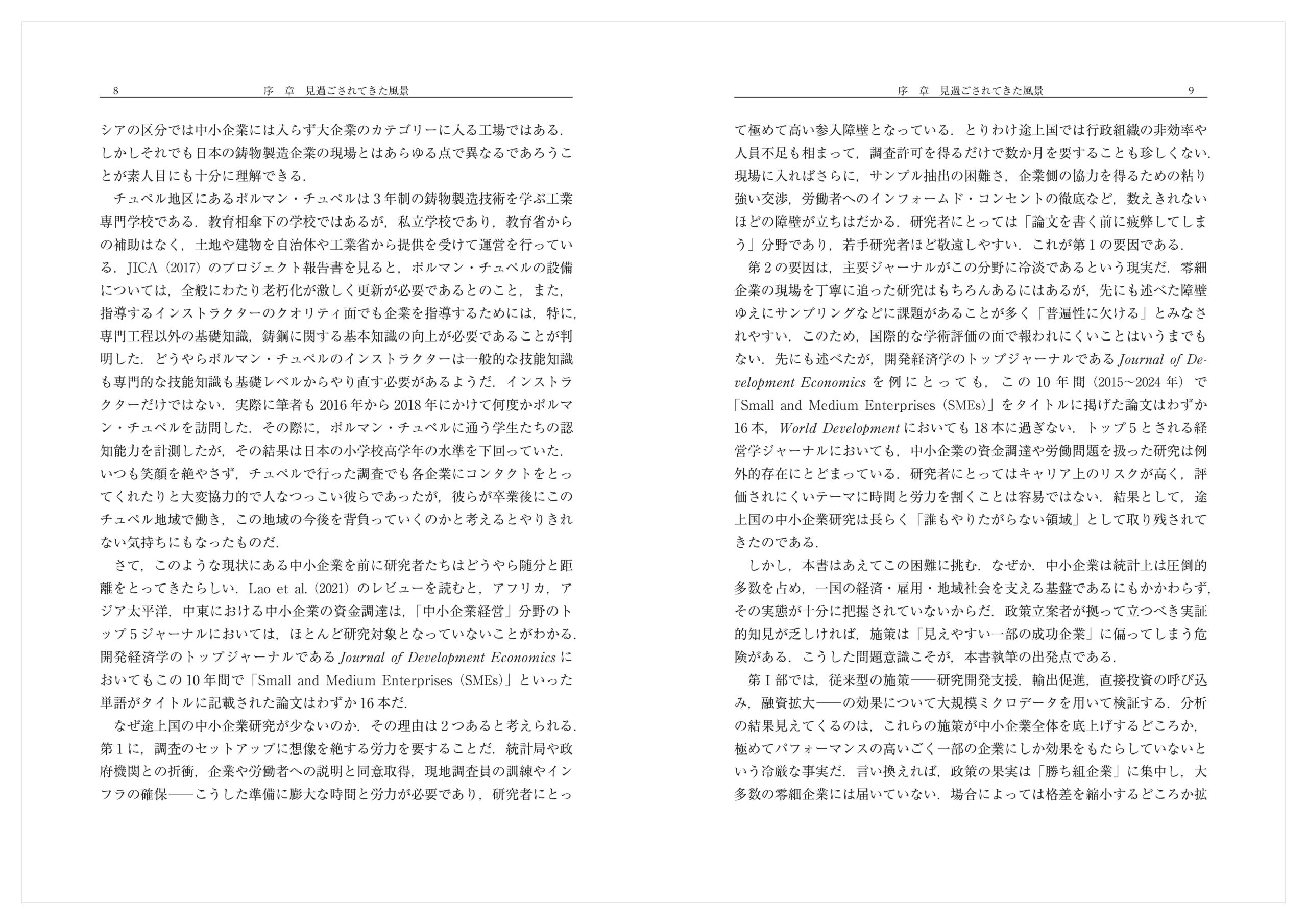 そしてその真実は,政策だけではなく,学術的にも大きな貢献をもたらすはずだ.本書はその挑戦的試みであり,途上国,中進国の中小企業研究に新たな地平を切り拓くための一助となれば本望である.