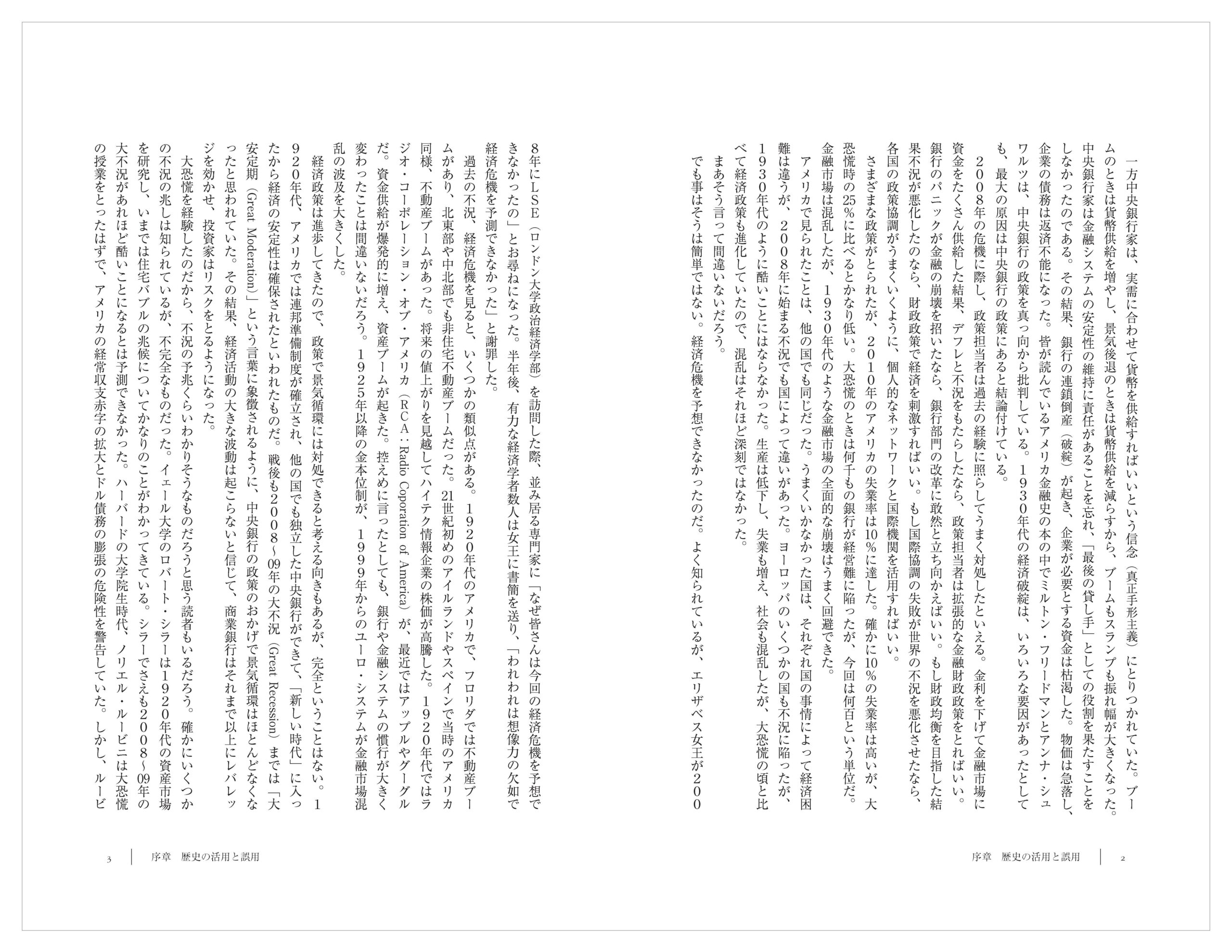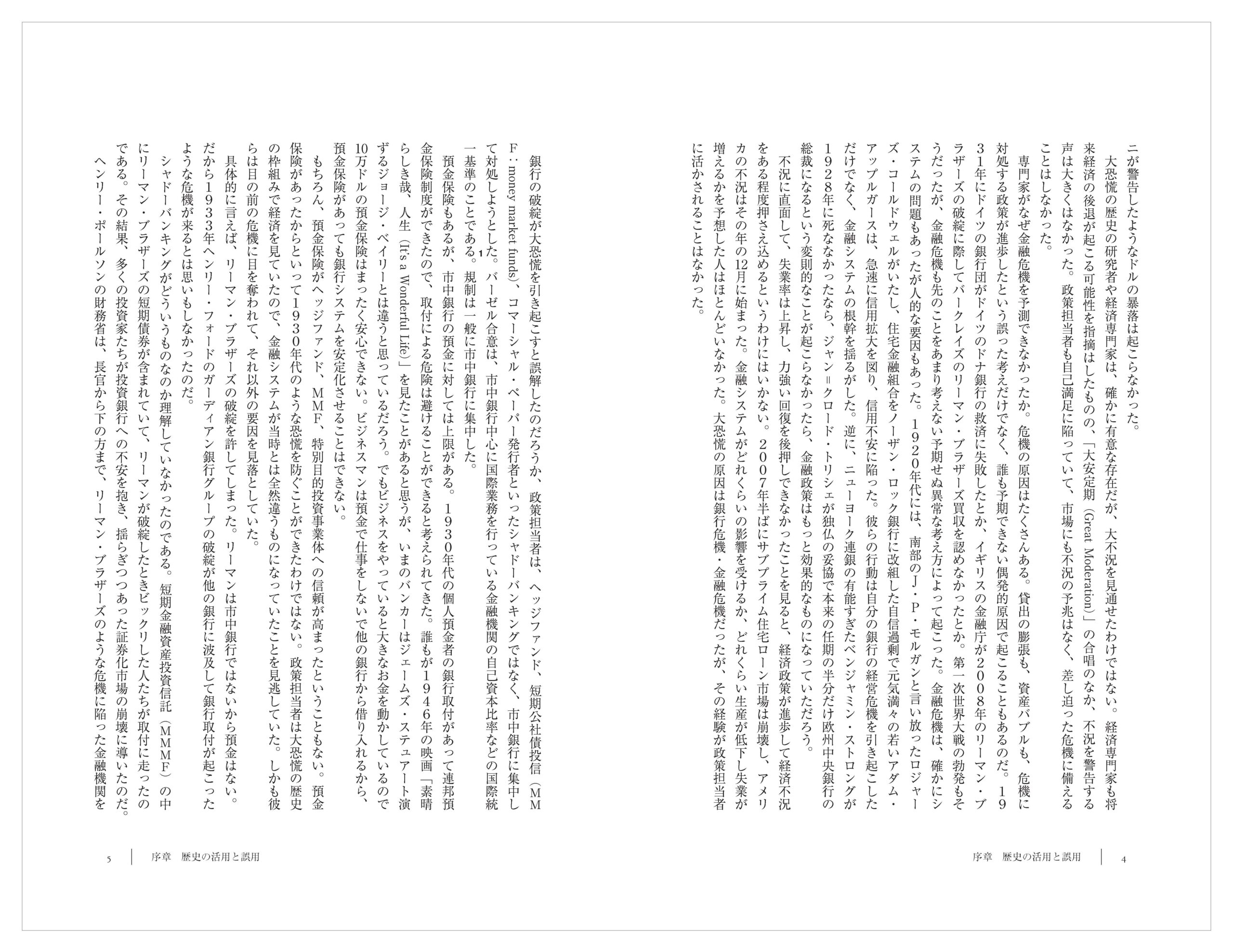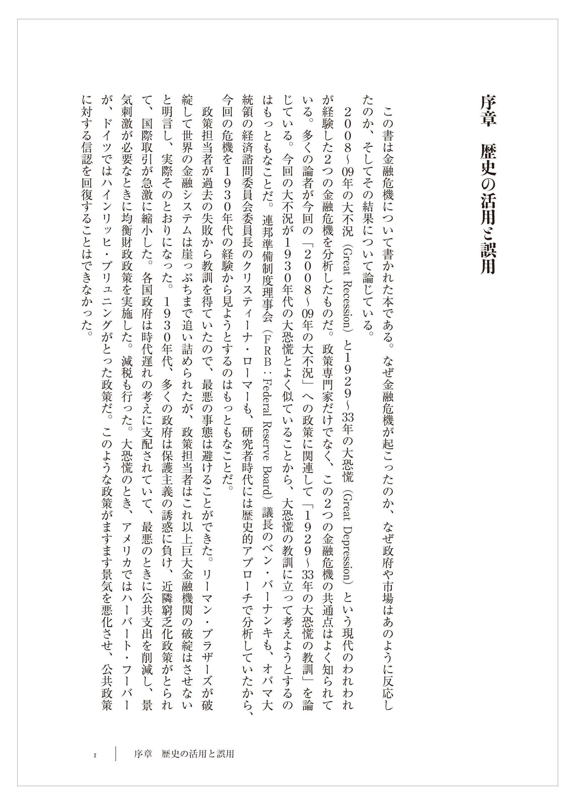 2008〜09年の大不況(Great Recession)と1929〜33年の大恐慌(Great Depression)という現代のわれわれが経験した2つの金融危機を分析したものだ。政策専門家だけでなく、この2つの金融危機の共通点はよく知られている。多くの論者が今回の「2008〜09年の大不況」への政策に関連して「1929〜33年の大恐慌の教訓」を論じている。今回の大不況が1930年代の大恐慌とよく似ていることから、大恐慌の教訓に立って考えようとするのはもっともなことだ。連邦準備制度理事会(FRB:Federal Reserve Board)議長のベン・バーナンキも、オバマ大統領の経済諮問委員会委員長のクリスティーナ・ローマーも、研究者時代には歴史的アプローチで分析していたから、今回の危機を1930年代の経験から見ようとするのはもっともなことだ。
