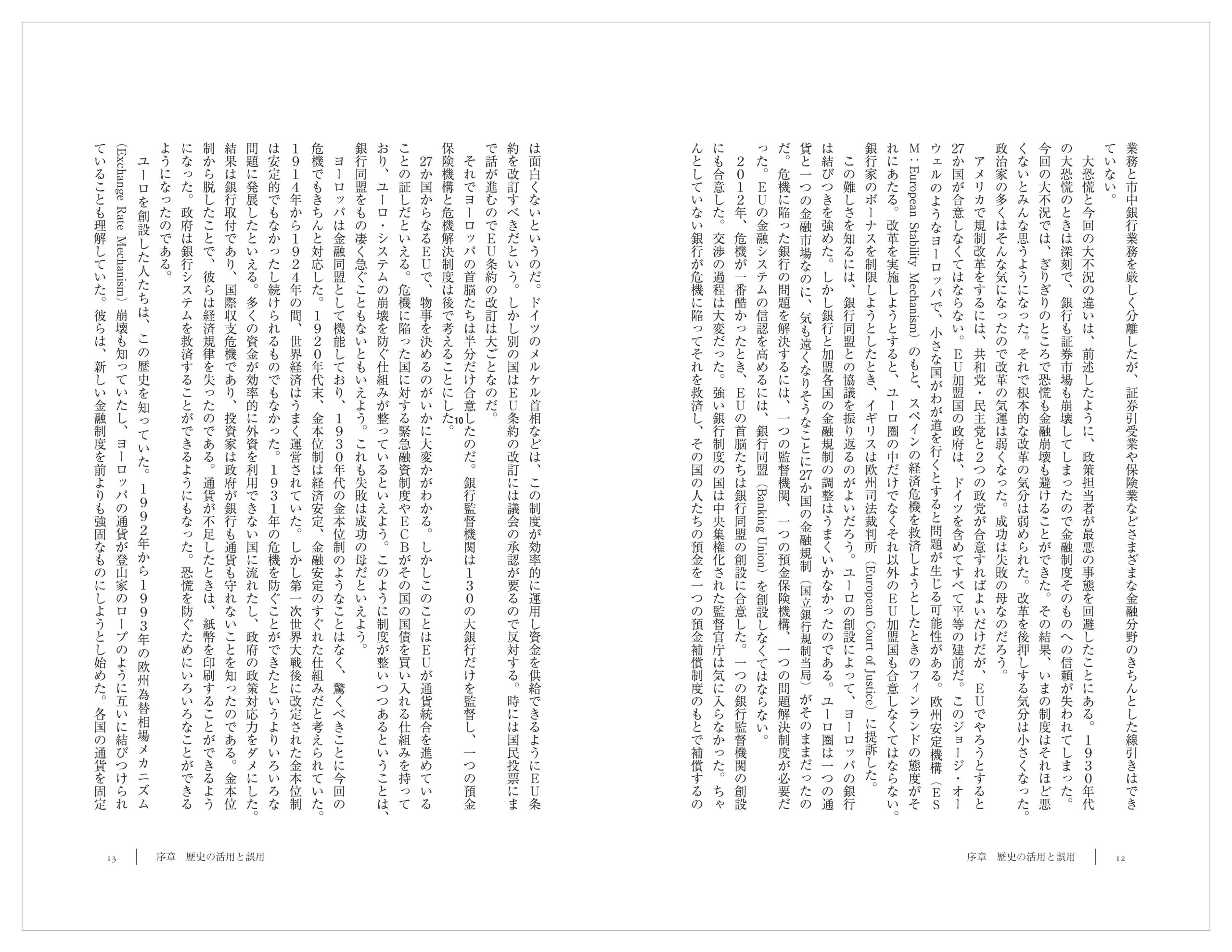 ユーロを創設した人たちは、この歴史を知っていた。1992年から1993年の欧州為替相場メカニズム(Exchange Rate Mechanism)崩壊も知っていたし、ヨーロッパの通貨が登山家のロープのように互いに結びつけられていることも理解していた。彼らは、新しい金融制度を前よりも強固なものにしようとし始めた。各国の通貨を固定相場で結ぶのではなく、単一通貨を創設しようとしたのだ。単一通貨だから、自国通貨を切り下げることはできない。ユーロ・システムは、各国の中央銀行によって規制されるのではなく、一つの中央銀行、すなわち欧州中央銀行(ECB)によって規制されているのだ。