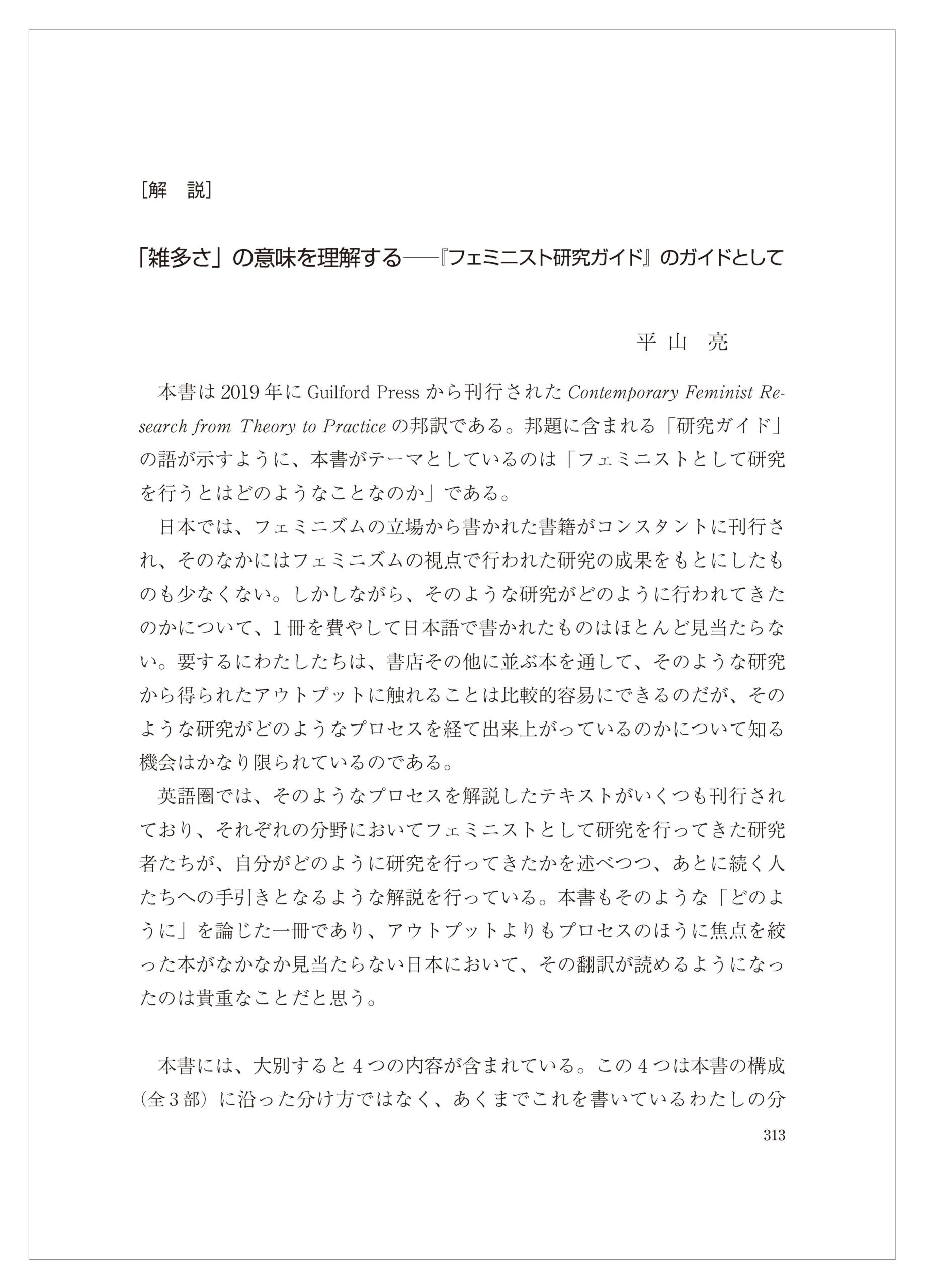 →〈「[解説]「雑多さ」の意味を理解する――『フェミニスト研究ガイド』のガイドとして」(pdfファイルへのリンク)〉